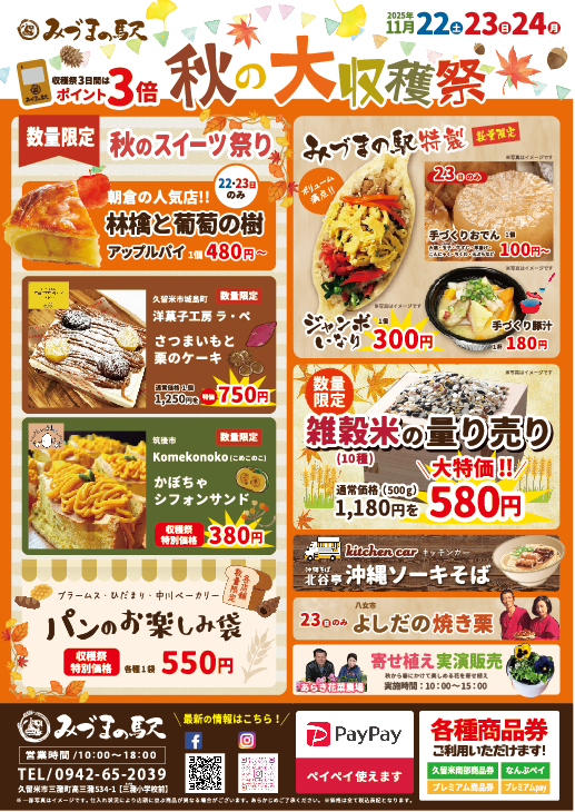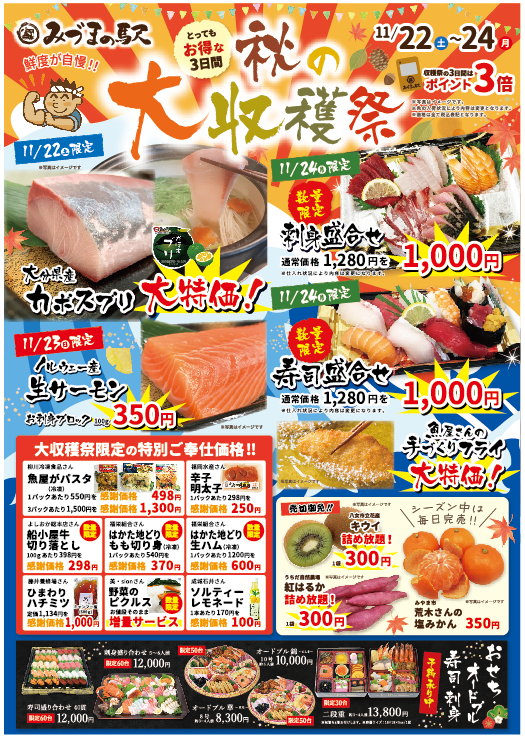 11/22(土)~11/24(月)の3日間『秋の大収穫祭』を開催します。