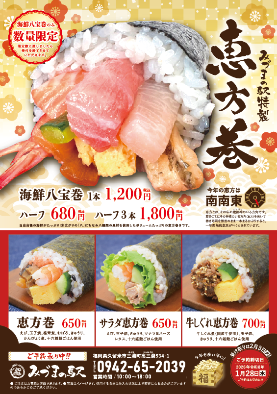 毎年大好評いただいております『恵方巻』